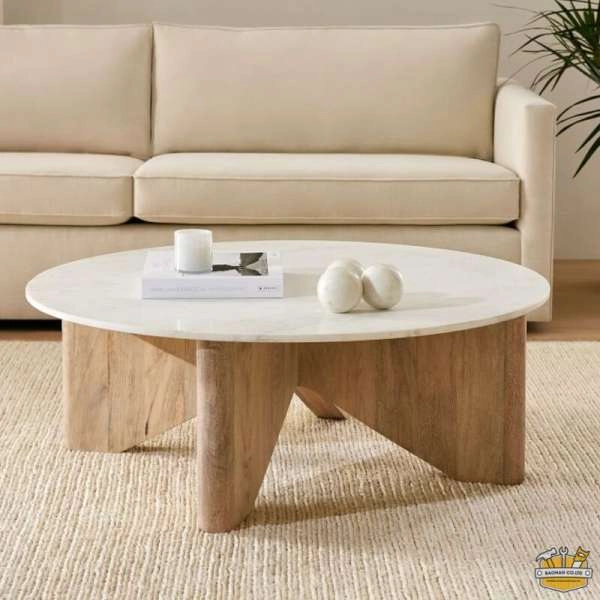 Chất liệu đá cẩm thạch nguyên khối mang đến bàn trà tròn Maddox có bề mặt mịn và sáng bóng. Chất liệu cao cấp không chỉ giúp bàn có độ bền cao mà còn chống trầy xước, chống nước tốt so với các loại bàn trà gỗ thông thường. Chân bàn làm từ gỗ xoài cao cấp, có kết cấu đan chéo vững chãi và tăng độ bền cho bàn trà.